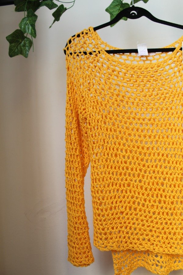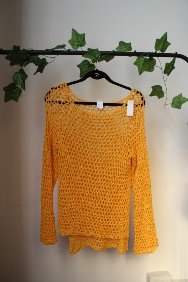 Buzito calado de hilo de algodon amarillo, talle s