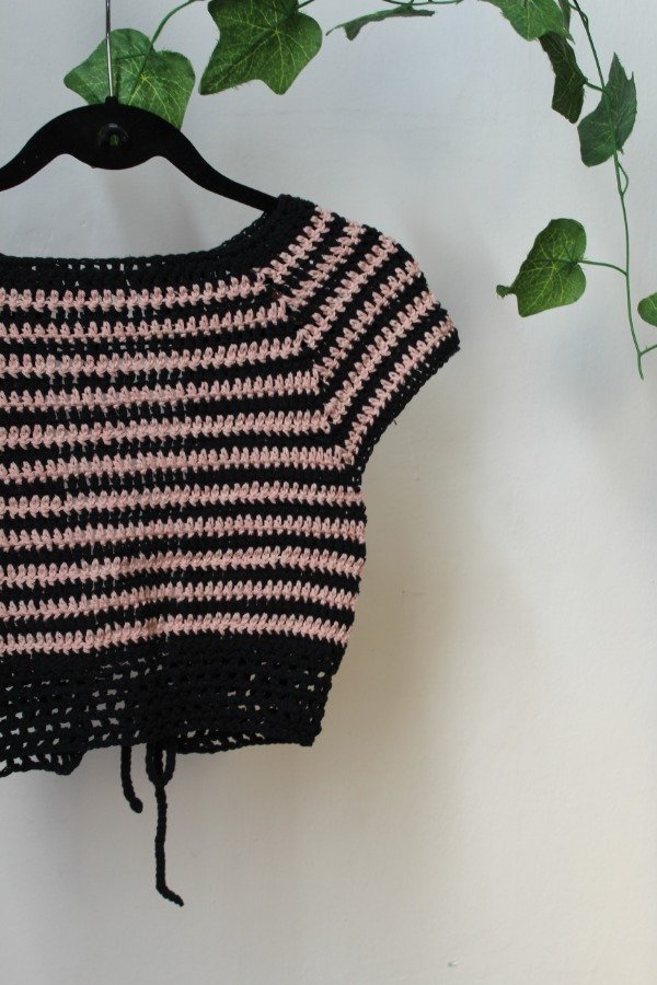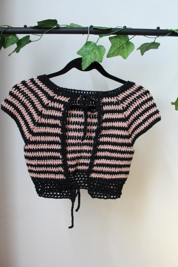 Remera tejida en hilo con seda y hilo de algodon, color negro y rosa viejo... talle s