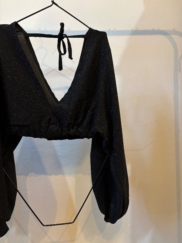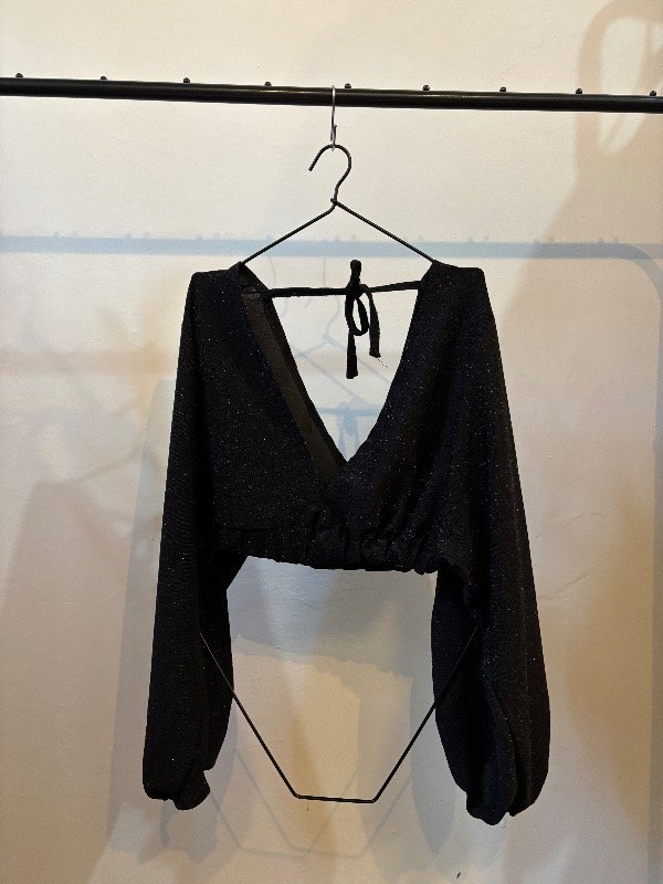 Top con escote pronunciado, tela brillosa. No pica! 🫶🏽 talle m/l